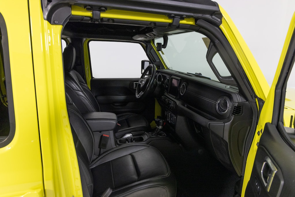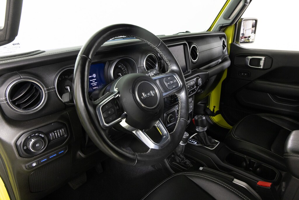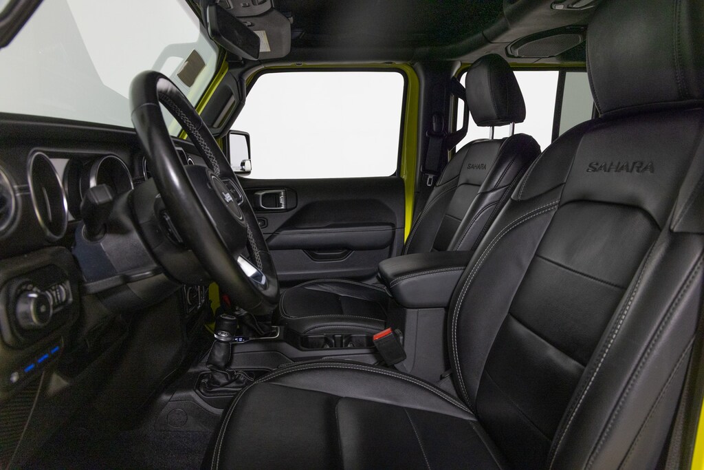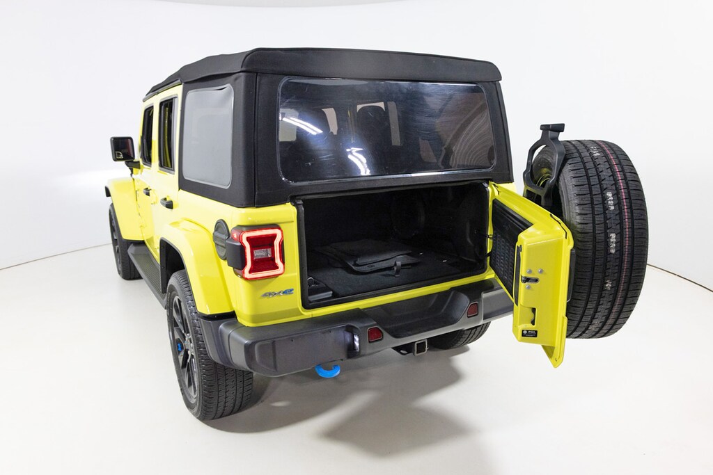 Finished in a bold color with classic Sahara trim details, this Unlimited 4xe includes leather-trimmed seats, Uconnect infotainment, and a removable roof and doors. It’s the future of off-roading, without losing the Wrangler soul.